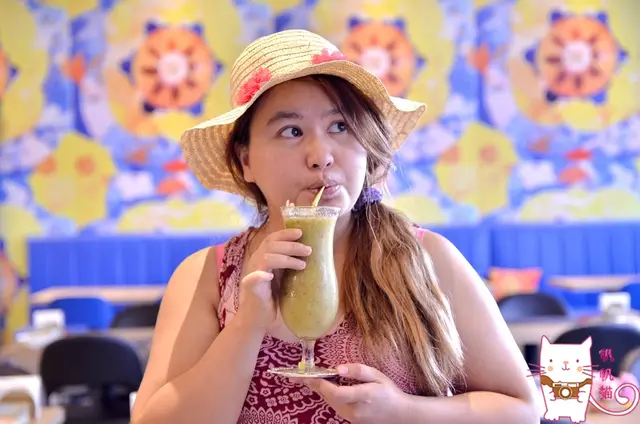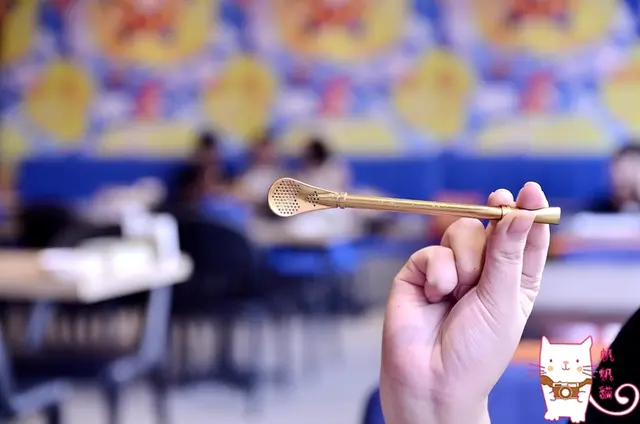餐點享用完之後,就是飲料時間,金色的吸管一邊是吸管一邊是帶有小孔的湯匙,看起來還挺有質感。
