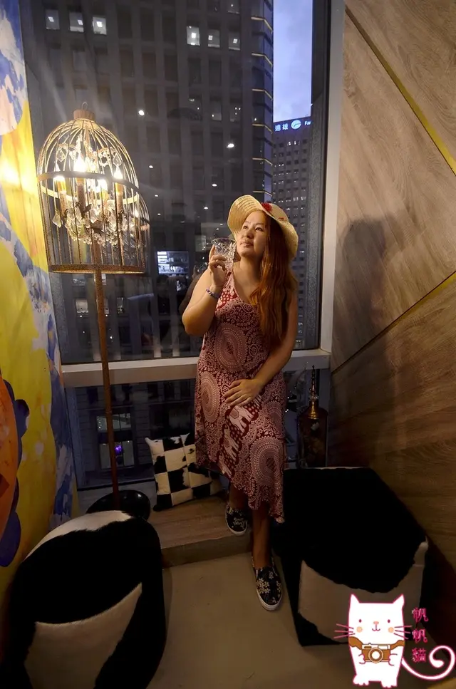 在扶桑花牆的角落,還有落地窗跟鳥籠造景,拿著玻璃杯,用假掰的神情望向鳥籠,是不是很想說聲:蹦揪兒~整個像是在法國餐廳的FU。