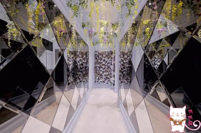 對了,還有一個滿是鏡子的花牆隧道,讓帆帆貓忍不住在裡面走秀,還拍起了寫真。