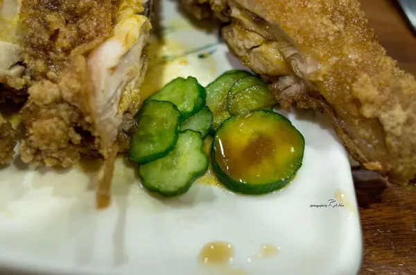 雞腿底下還有解膩的小黃瓜。小黃瓜口感脆,醃的鹹度適中。