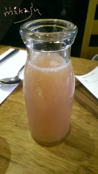 我們分別點了 當季特選新鮮果汁+太妃糖紅茶(熱)