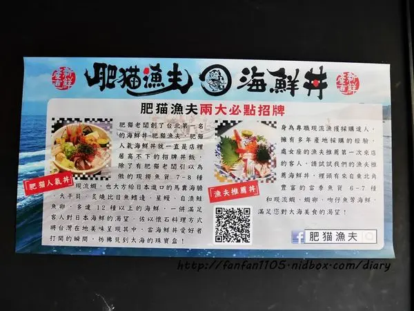 肥貓漁夫 海鮮丼專賣其新鮮的美味是來台灣必吃的海鮮,新鮮用心看的見,以食材的鮮度來說很超值呢!