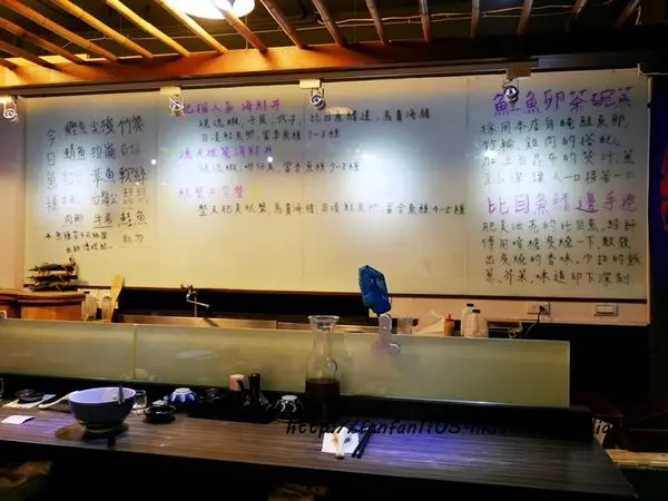 在吧台區這邊店家會把今日所進的魚種都寫在白板上,每天供應的魚種不一定相同,還有不少我都沒看過的魚種呢