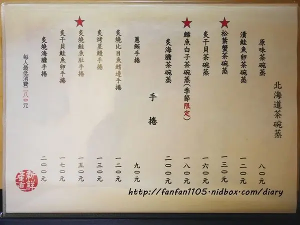 我們選擇了炙燒鮭魚肚手卷、海味魚頭味噌湯、炙干貝茶碗蒸、肥貓人氣海鮮丼、嚴選散壽司丼,等等一一來跟大家介紹