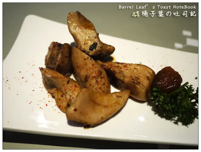 杏鮑菇嫩實、菇味明顯,調味不會太重,但夠味,不過上頭多灑的些許辣粉葉子不太愛就是。