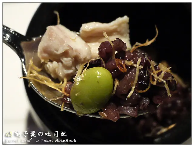 紫米粥的部份是已經完全吃不太到米粒的口感~煮的非常軟,不過葉子吃時才發現就是單純的紫米,