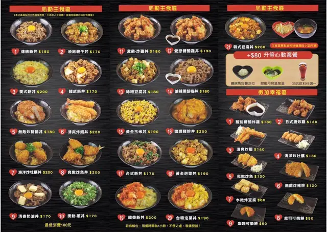 這種價格真的是讓人好「心動」 丼飯單點都只要200元以內 且不收服務費