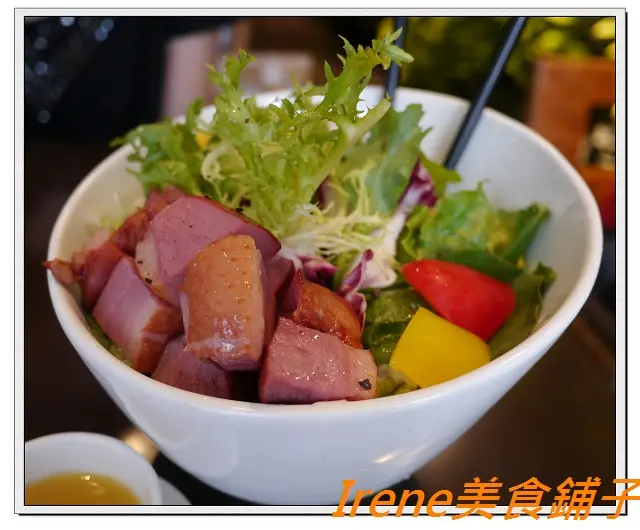 個人覺得這沙拉跟燻鴨的組合還不錯~吃菜吃得有點悲傷時,來塊燻鴨就有點小小滿足~反而沒有澱粉類,我就把它稱為減重沙拉嚕!!!