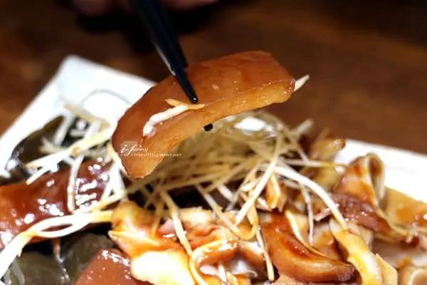 這個隱藏版的豬皮要吃到可是要點運氣,這天我們的運氣很好,正好能嚐到這QQ豬皮。