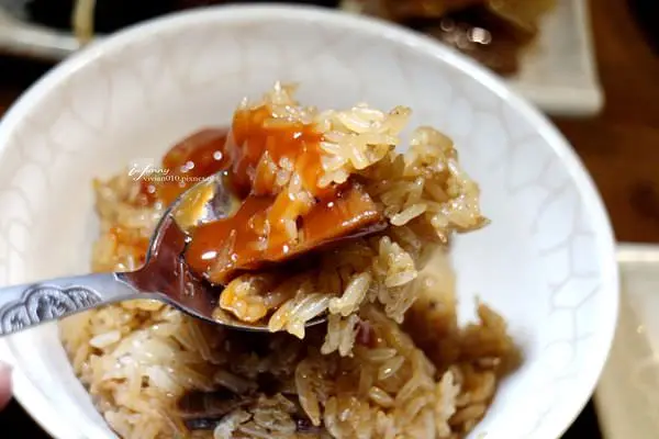 雙月的油飯,粒粒分明且入味,入口後的米香及Q彈都好令人喜愛!