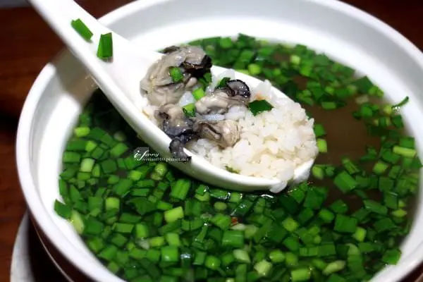 利用高湯溫度沖出韭菜的特殊香氣,加上來自東石直送的鮮蚵,鮮甜滋味融入米粒中。