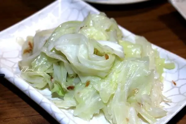 這燙青菜加入了油蔥攪拌過,因此增添了許多香氣。此時的高麗菜真是超甜的!
