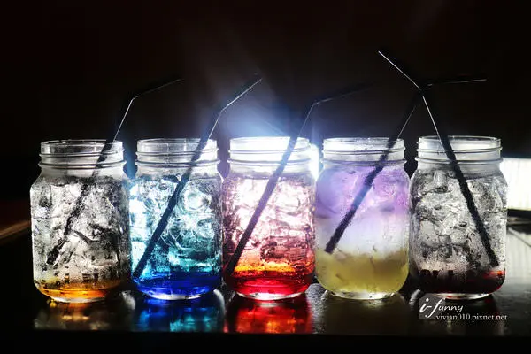 由於氣泡飲的顏色太過美麗,於是我們一時玩心興起,就玩起了燈光秀。