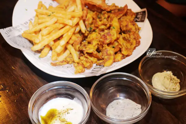 豬耳朵經油炸後,變成脆中帶軟的口感,單吃就很好吃,配上酸豆醬更是別有風味。