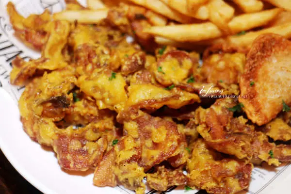 金黃的麵衣上吃到胡椒鹽的鹹香,還有那咬下的清脆聲,真是悅耳!