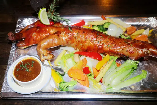 目前豬跳舞的整隻烤乳豬$7500,另外烤羊腿$4200,這特殊的食材需事先預訂喔!