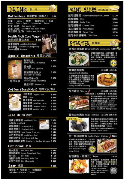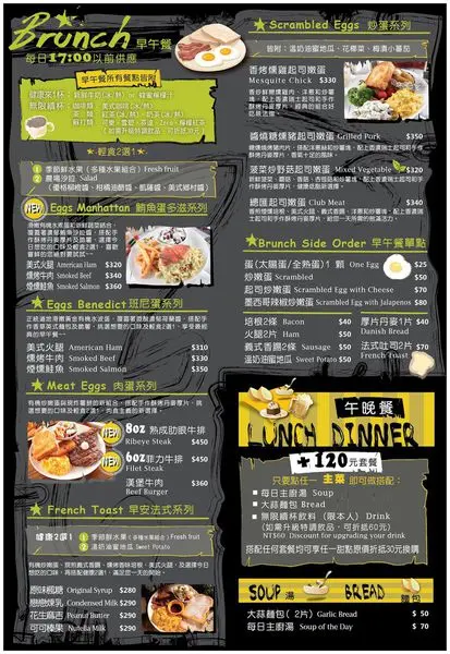 價位由$180~$450不等,另附每日濃湯及無限續杯飲料。