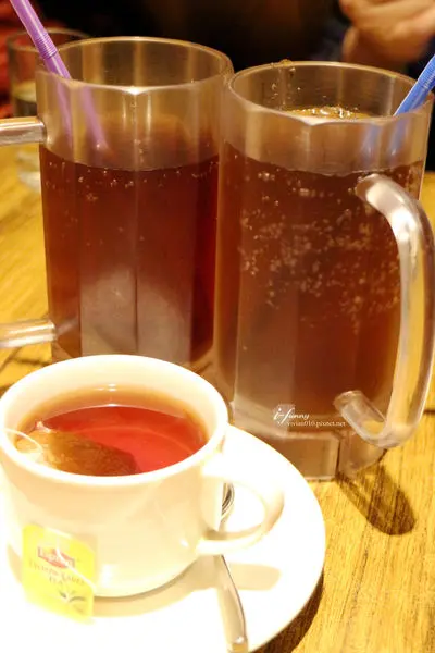 這天點的餐點,均附飲品喝到飽,我們點了冰紅茶、冰檸檬紅茶及熱紅茶,