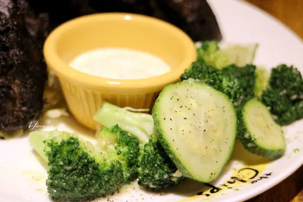 一旁綠花椰及櫛瓜,簡單的調味,與炸物搭來真是清爽美味。