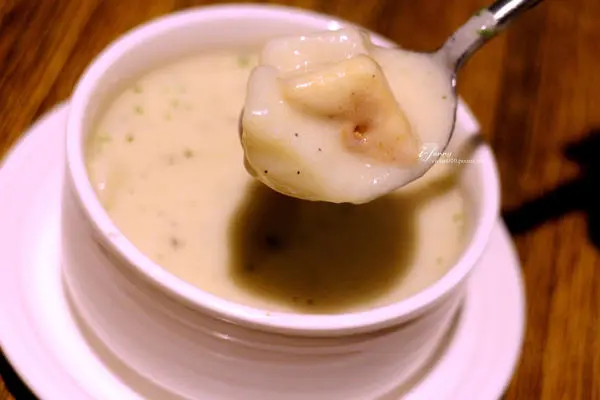 附的是馬鈴薯湯,濃稠且料多實在,飽足感也夠。