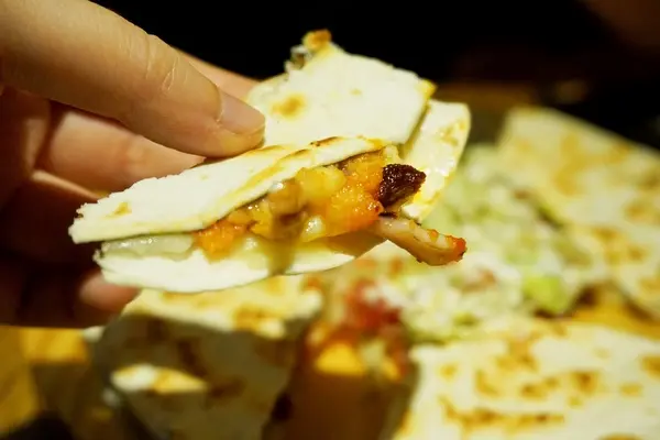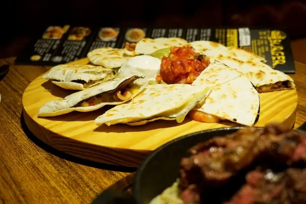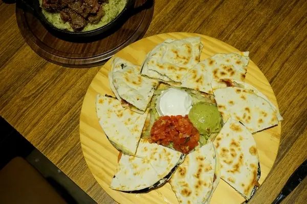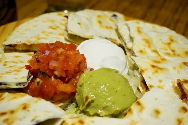 中間放上三款醬料 酸奶、酪梨和莎莎番茄醬