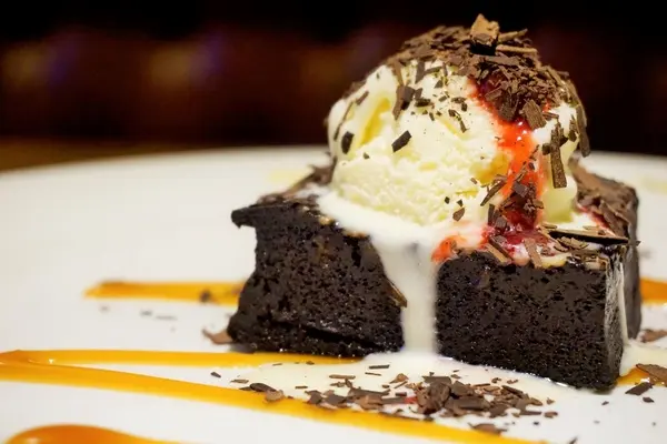 底層的巧克力布朗尼入口即化 帶著苦甜的濃郁香氣就這樣化在嘴裡