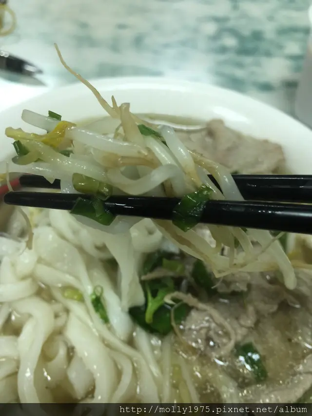 河粉的麵條,Q彈爽口,不會有粉粉爛爛的口感麵條,還算可以接受,湯麵裡使用大量的豆芽菜做搭配!