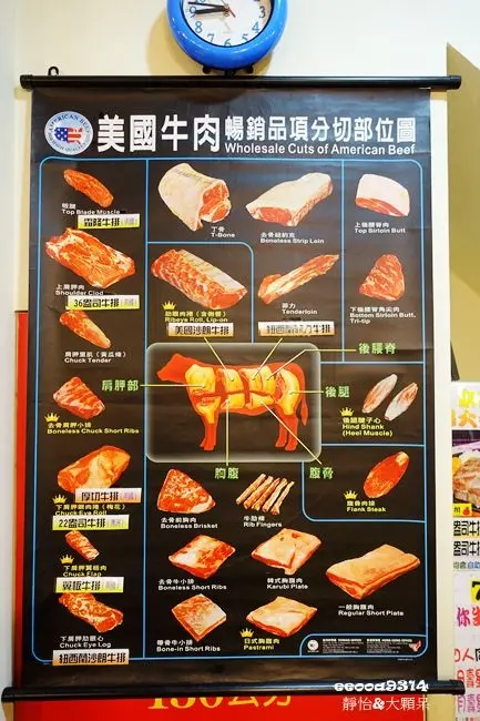 很貼心店內還有一張海報告知我們所吃的牛排是屬於牛隻的哪個部位