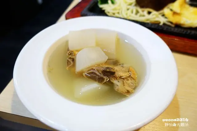 除了牛排店常見的玉米濃湯之外,還有蘿蔔湯耶