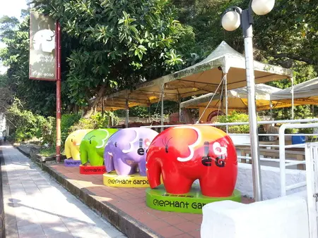 依山面湖的《象園咖啡》門口擺放的四座彩色小象非常可愛吸睛!