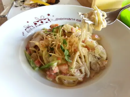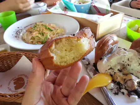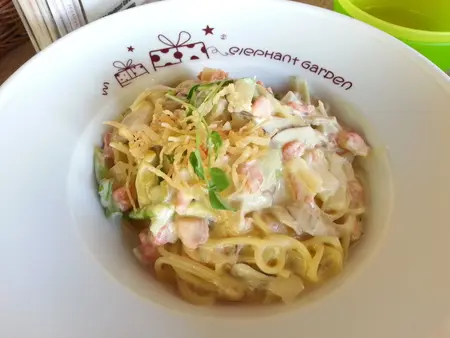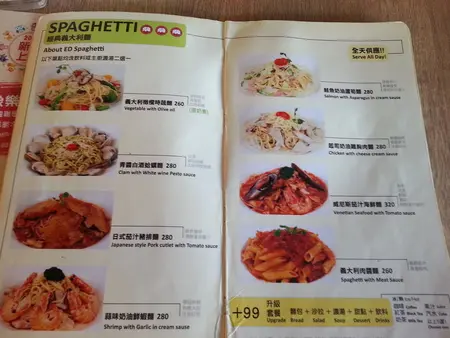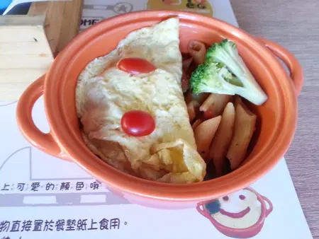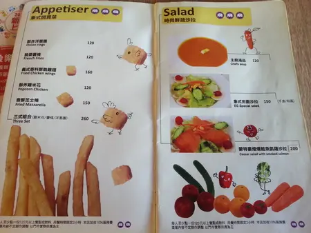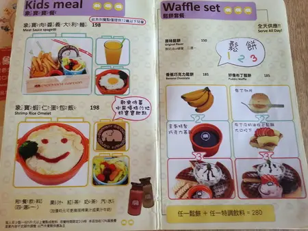 於是我們點了最吸引我的三樣商品:看起來超美味的「義大利麵」、外型非常獨特吸睛的「小象樂園鬆餅」以及看起來很超值的「兒童餐」~