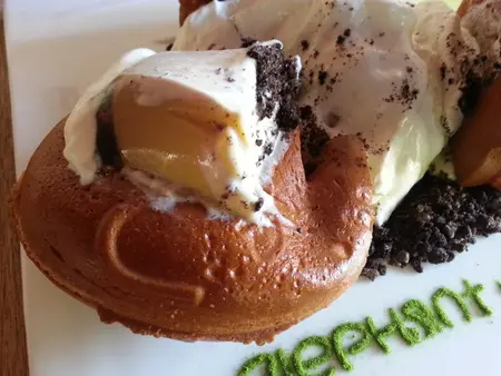 鬆餅的厚度非常的令人滿意,重點是皮脆內Q彈,甜度帶出了鬆餅的雞蛋香氣,真的是歐~伊~西~捏~
