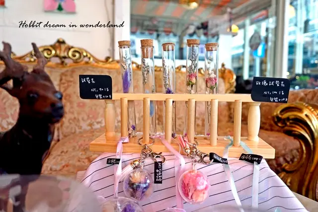 桌上放有試管乾燥花以及乾燥花球型吊飾,都是可以買回家的(他們好了解少女心)