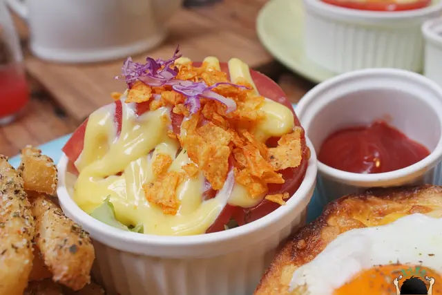 ▲ 生菜沙拉上方撒有多力多滋餅乾的碎片