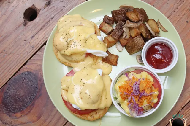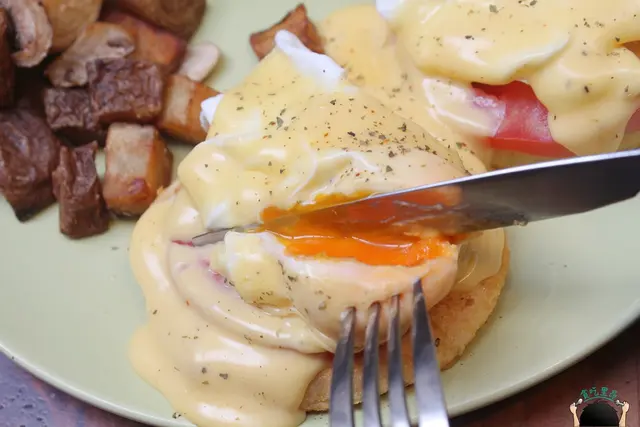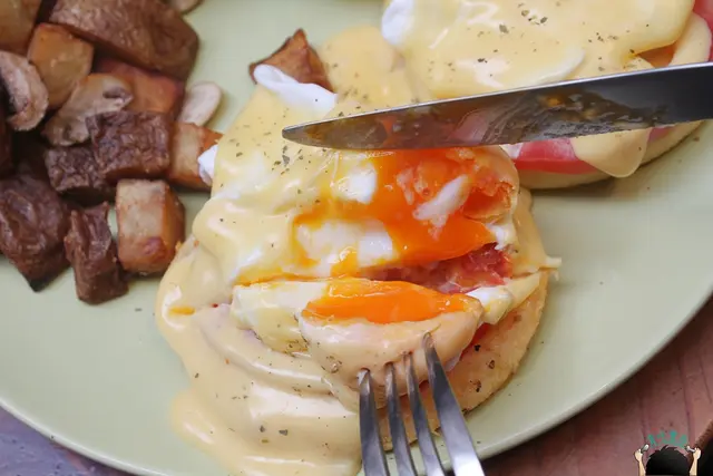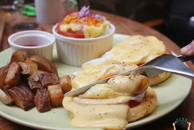 水波蛋似乎煮得稍熟了一點,蛋黃並沒有如想像中那樣傾出