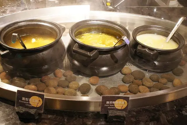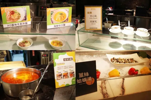 土瓶蒸、蒸蛋(裡面有白蝦、雞肉,湯頭相當鮮美),以及異國特色料理: 人蔘雞湯(韓國)、涼拌花枝(東南亞季限定)