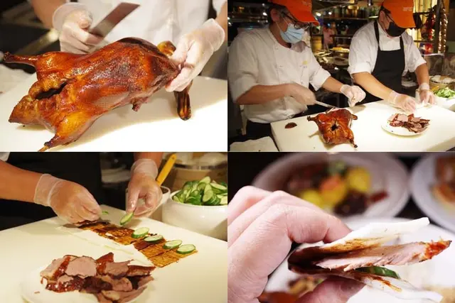 現場片的片皮烤鴨,相當厚實醇香,搭配小黃瓜很清爽好吃,一次最多拿兩份喔