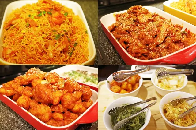 辣炒年糕、韓式炸雞、韓式烤肉包生菜、韓式炒泡麵