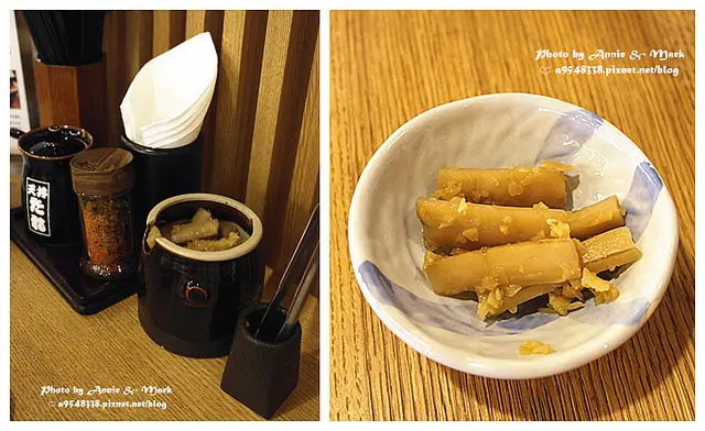 閒閒等待時,發現桌上一旁還有附上醃漬牛蒡,