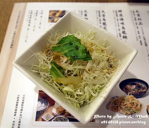 套餐附的沙拉,其實就是高麗菜絲+和風醬汁,沙拉一向不是我的菜,