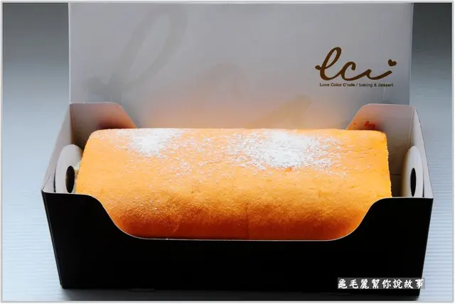 一打開外盒,就會看到像是初雪,灑在金黃的蛋糕體上。