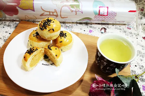 打開包裝後,黃澄澄的奶黃酥~香氣撲鼻而來^^好想趕快享用啊^^