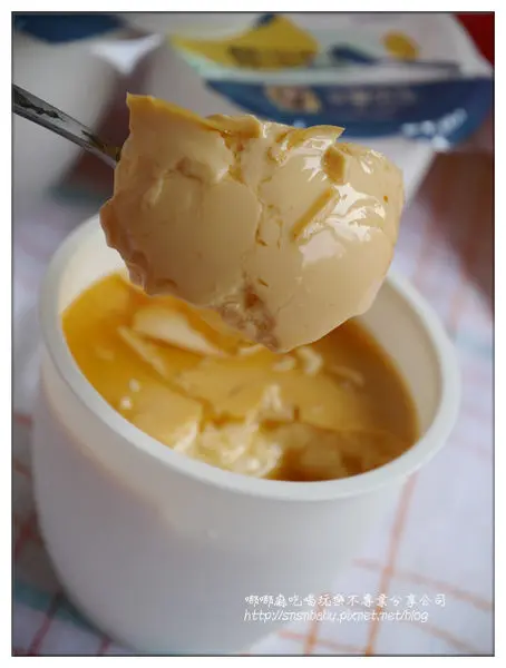 不過外觀不影響口感,哪哪麻很興奮的拿湯匙挖了一口Q嫩的布丁,