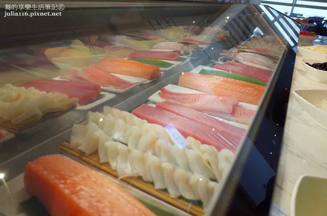 內部有四大餐台區,從甜點區、冷盤、熱食再到日式生魚片與壽司吧