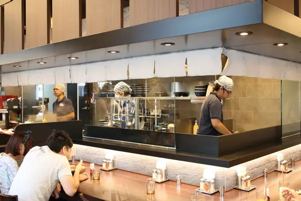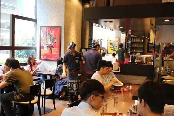 環繞開放式廚房的吧台座位讓獨自前往的人也能專心吃麵不尷尬