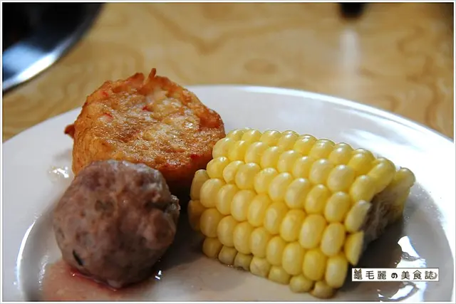 水果玉米和三樣火鍋料,雖然數量都只有一個,卻都是日本高檔火鍋料,