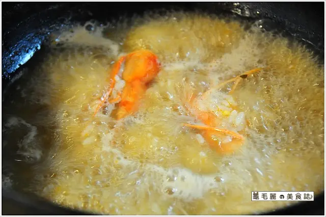 因為蝦子的黏稠特性,讓它還在原地掙扎一下下才願意下鍋去。