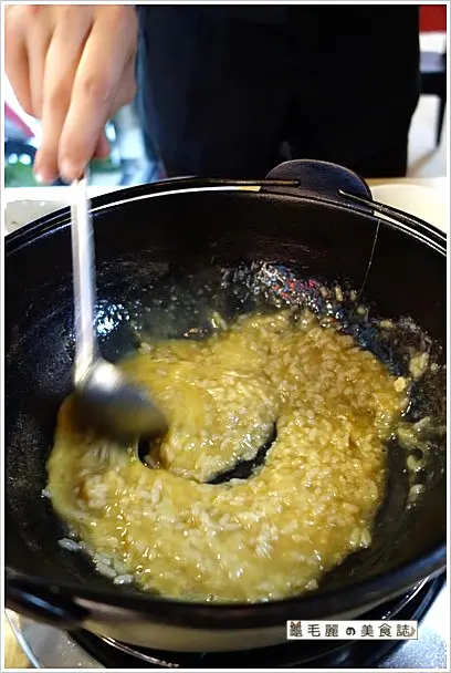 開大火,讓米飯吸進湯頭,過程中要稍微攪拌。