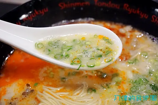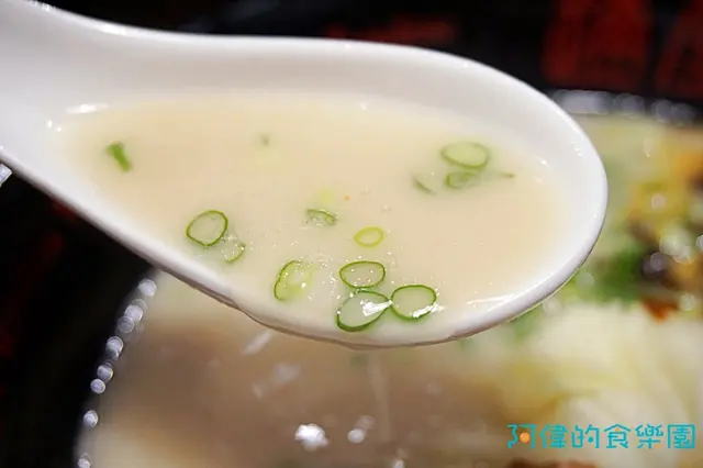 乳白色的豚骨湯頭好濃郁,會一口接一口的喝。