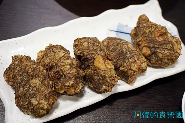來自沖繩的水雲(又名褐藻),自古以來就被視為神仙菜,相傳當年秦始皇派徐福前往日本尋 找 的 長 生 不 老藥 ,就 是 水 雲 。 將 水雲 與 午 餐 肉 裹 上黃 金比 例 的 麵 液 炸 到內 軟 外 酥 , 就 是一 道人 氣 最 旺 的 不 敗料 理 , 推 薦 初 到到 訪的你一定要試試。